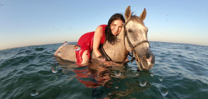 - 1 heure de balade dans la mer Rouge pour une petite baignade équestre.