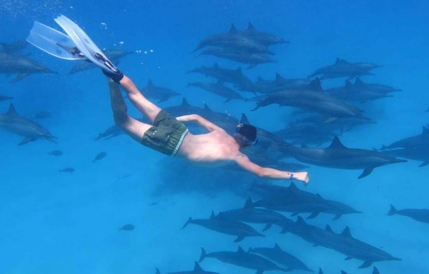 Partez pour une aventure inoubliable au cœur de la mer Rouge et vivez l’émotion unique d’observer ou nager avec les dauphins dans leur habitat naturel. Profitez de magnifiques spots de snorkeling, explorez des récifs coralliens colorés et découvrez une faune marine exceptionnelle.